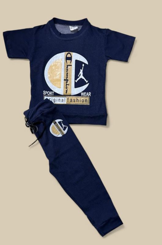 Comfortable boys’ sportswear / nightsuit set designed for both active use and relaxed wear. The set includes a round-neck short-sleeve t-shirt with a bold graphic print and matching jogger-style pants, both crafted from premium-quality cotton blend fabric. Soft, breathable, and durable for everyday comfort.